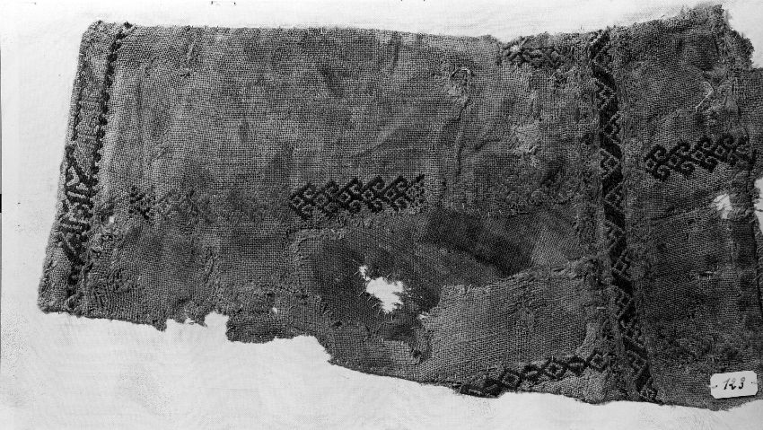 One pattern from a sleeve, either black or red silk on linen, Egypt, 1201 - 1500