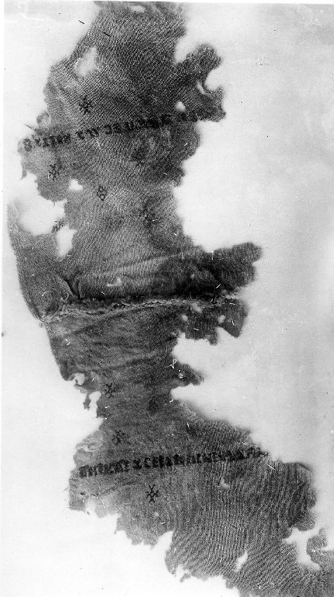 One pattern from a sleeve, either black or red wool on linen, Egypt, 601 - 800